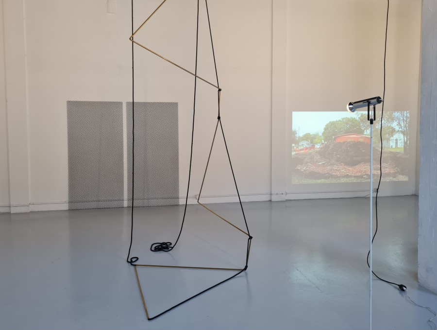 This is not an exhaustive selection of works acquired by the Frac or linked to reviews published in the journal—which would have required several similar exhibitions—but rather a deliberate selection drawn from the Frac’s collection to create a unique journey featuring artists who have left their mark on both institutions at a given moment. This was the case for the Spanish artist Lara Almarcegui, whose early use of upcycling was discovered in her installation at the Grand-Café in Saint-Nazaire in the 2000s; for Saâdane Afif, author of a memorable exhibition at this same Frac des Pays de la Loire in 2008; Marie Voignier and her incisive documentaries on the issue of labor, Hoël Duret, a graduate of the Nantes School of Fine Arts who staged a traveling exhibition between Zoo Galerie and the Frac des Pays de la Loire in 2014–2015, Carole Douillard, a well-known Nantes-based artist with a demanding and unspectacular approach to performance art; Leonor Antunes, whose installations made of metal filaments and cables fill the space with openwork patterns; Teresa Margolles, whose unapologetic radicalism makes no exceptions when it comes to defending minorities; but also, in light of current national events, featuring Otobong NKanga, whose sharp reflections on the harm inflicted by Western multinationals on African peoples graced the walls of the Musée d’Art Moderne de Paris until February of this year.