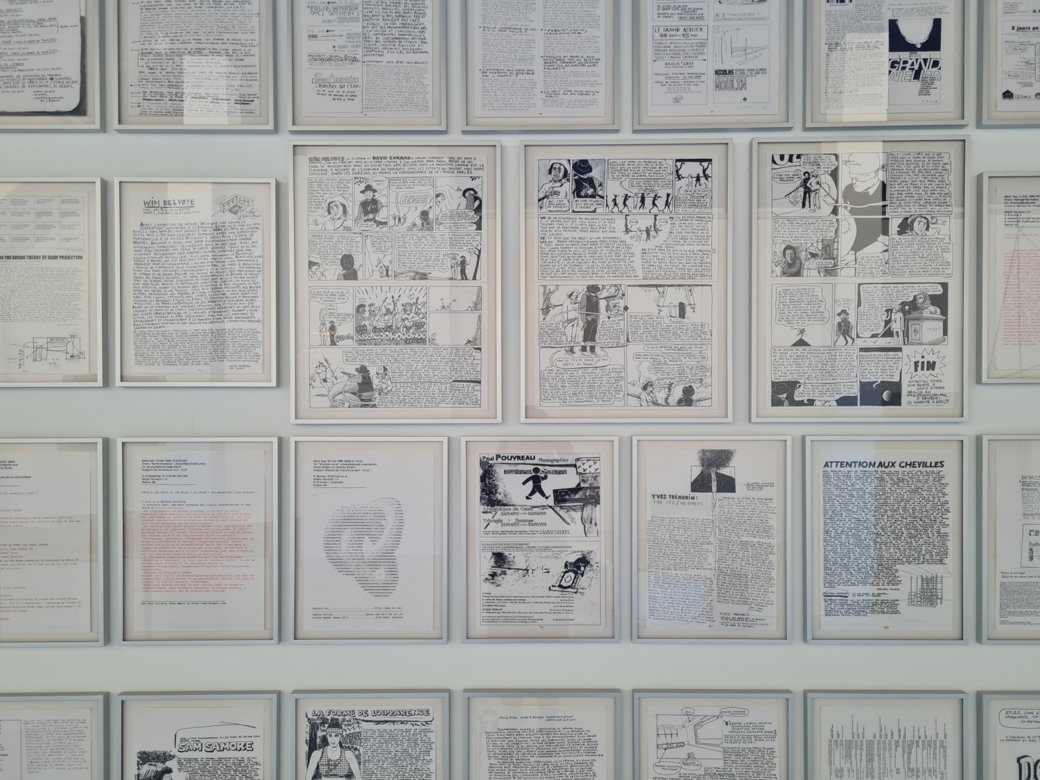 Partant de ce constat, l’exposition effractions s’est déclenchée à partir de l’œuvre d’Ivo Provoost, artiste flamand du duo Denicolai & Provoost, invité à la biennale de Venise 2024 par la Wallonie pour investir le pavillon belge partagé pour moitié entre flamands et wallons. A l’occasion de sa résidence de post-diplôme en 1997-1998 à l’école des beaux-arts de Nantes, la revue 02 avait demandé à l’artiste de réaliser intégralement son numéro 9 dessiné à la main… Ce qui avait nécessité l’accord des annonceurs qui tous avaient joué le jeu. Cette œuvre (composée des dessins originaux avant scannage) a été acquise par le Frac des Pays de la Loire en 2009.